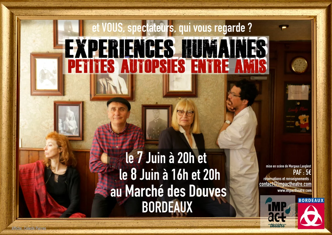 Expériences humaines et petites autopsies entre amis, le nouveau spectacle de théâtre de la troupe Imp’Act loisirs. En invisible et déroutant, soyez prêts.