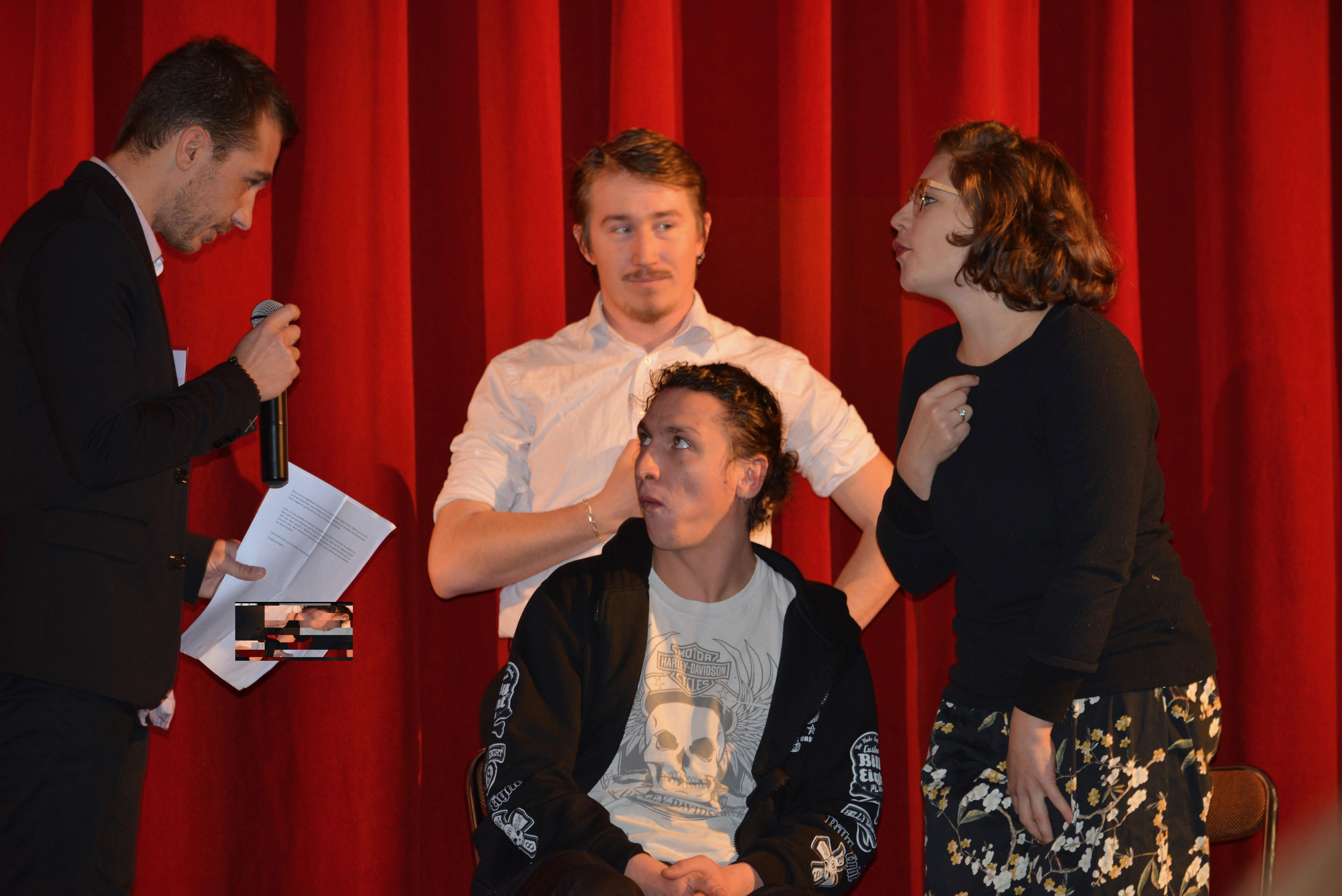 Mise à nu de cette thématique de société par Medhi, Margaux, Alphonse, comédiens d'Imp'Act.